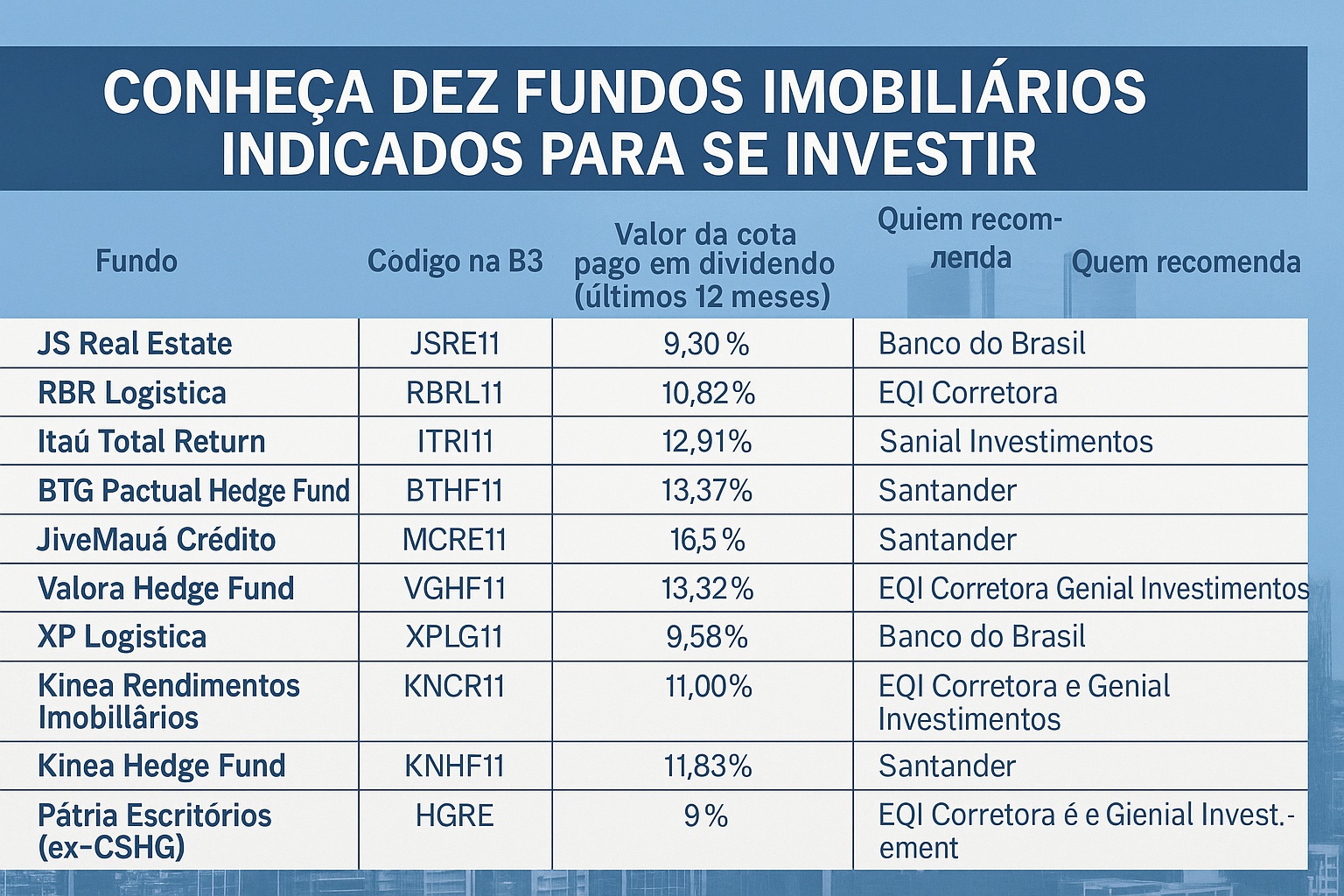 Os fundos imobiliários (FIIs) seguem como uma das formas mais inteligentes de construir renda passiva e diversificar investimentos. Em outubro de 2025, as principais corretoras e bancos atualizaram suas carteiras recomendadas, trazendo um novo foco: fundos de tijolo voltam a ganhar destaque, enquanto os fundos de CRIs perdem espaço nas recomendações.