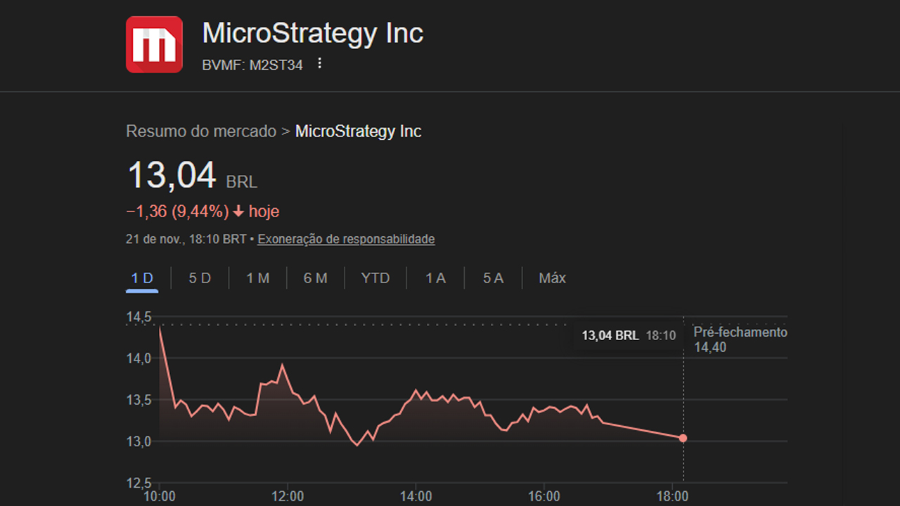 No entanto, nas últimas semanas, o papel despencou mais de 40%, muito acima da desvalorização do BTC no mesmo período.
