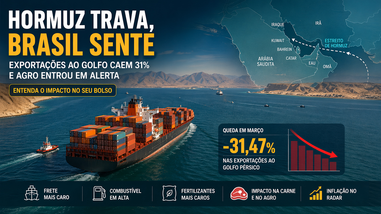 No fim, a lição é brutalmente simples: o Estreito de Hormuz parece distante no mapa, mas está perigosamente perto do bolso do produtor, do exportador e do consumidor brasileiro. Março mostrou que uma rota marítima congestionada consegue bagunçar açúcar, milho, frango, café, carne bovina, fertilizantes, frete e inflação tudo ao mesmo tempo. É o tipo de efeito dominó que lembra uma verdade pouco glamourosa do comércio global: a economia moderna é um sistema nervoso. E quando um ponto sensível é pressionado, o corpo inteiro sente.
