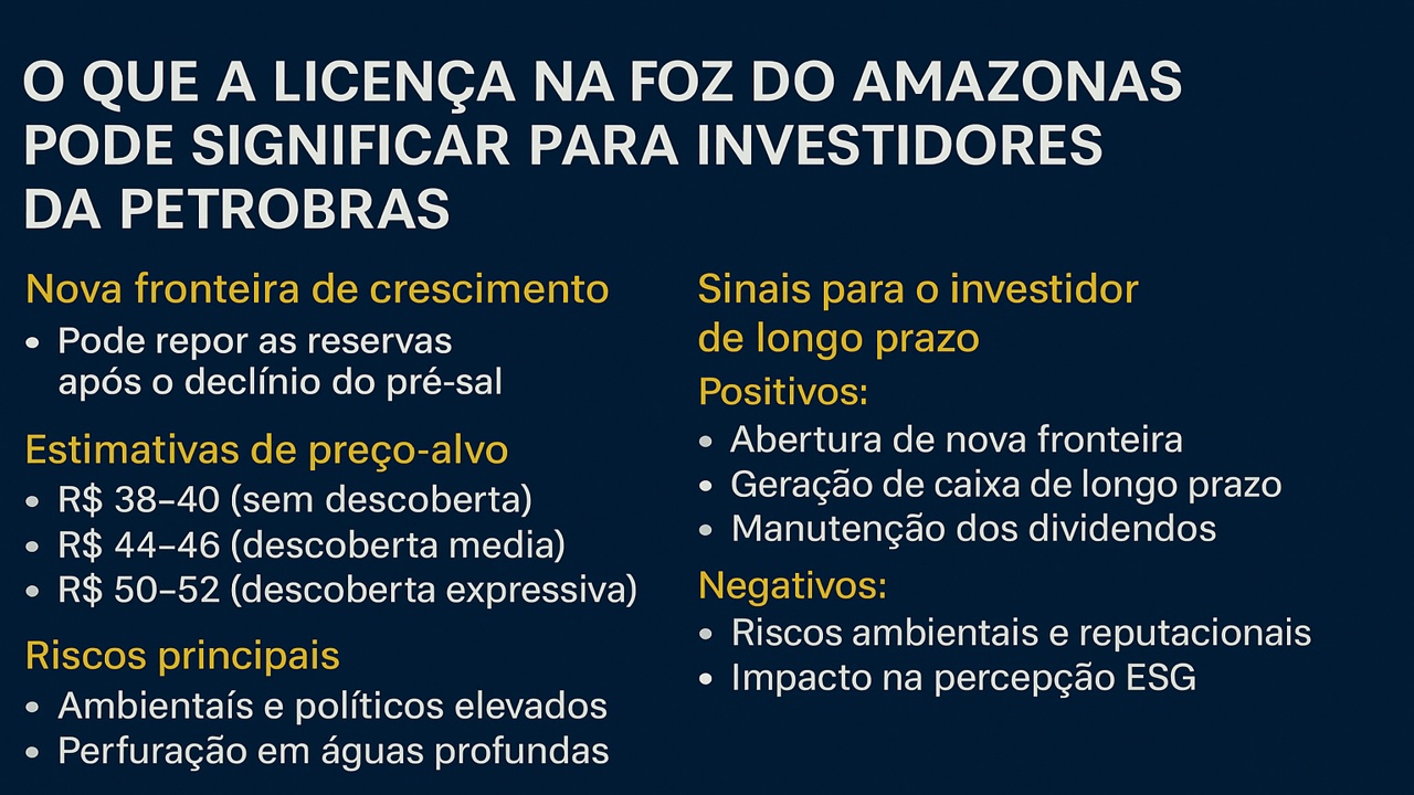 A confirmao de reservas significativas na Foz do Amazonas poderia elevar o valor de mercado da Petrobras em at 8?12%, segundo estimativas preliminares de casas de anlise internacionais.