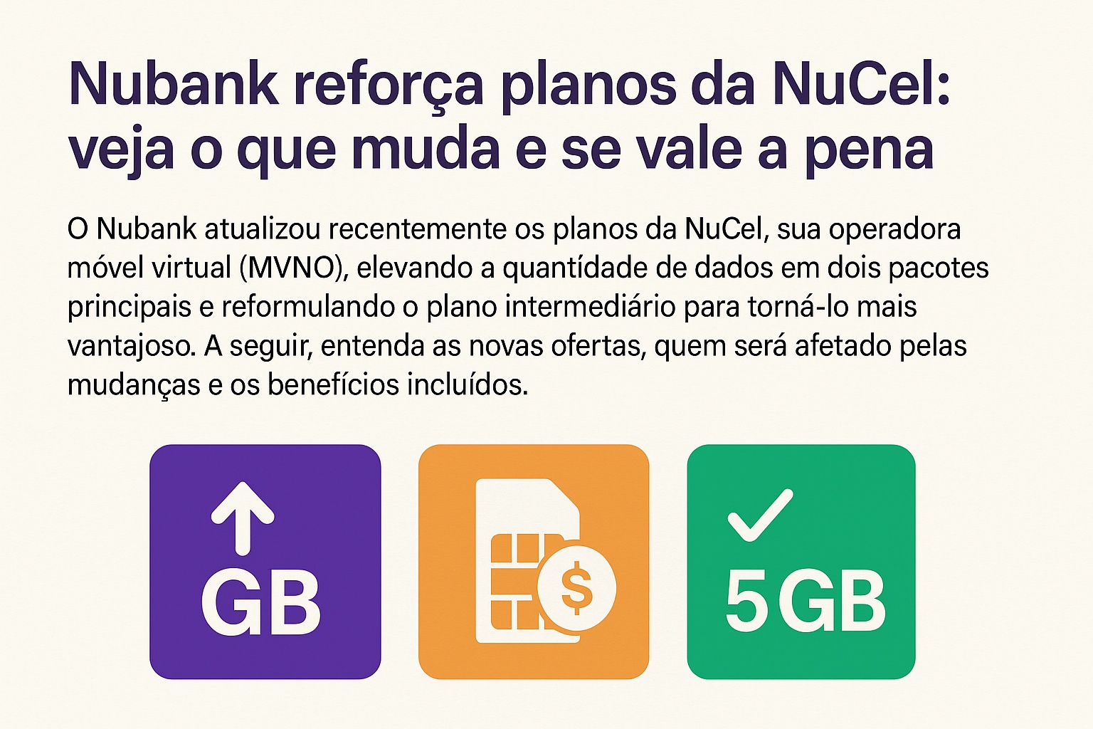O Nubank acaba de atualizar os planos da NuCel, sua operadora móvel virtual, trazendo mais internet e melhor custo-benefício para os clientes. As novas opções deixam o serviço mais competitivo e reforçam a presença do banco digital também no setor de telecomunicações.