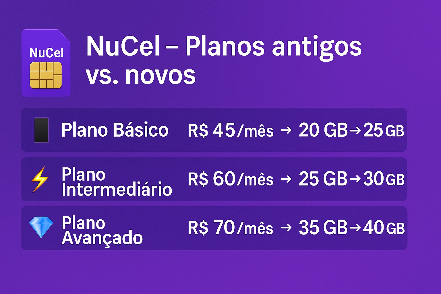Com mais internet, chip físico e integração direta ao app, a NuCel se consolida como uma opção moderna e prática para quem quer conectividade e finanças em um só lugar.