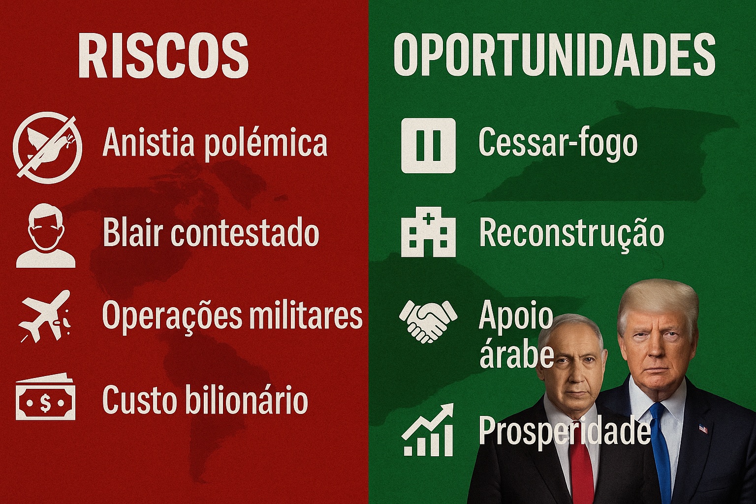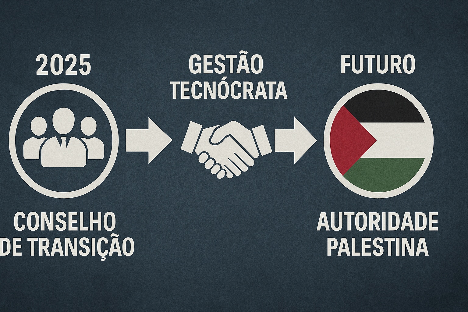 ?? Administração provisória por tecnocratas palestinos sob o ?Conselho da Paz? liderado por Trump e Tony Blair.